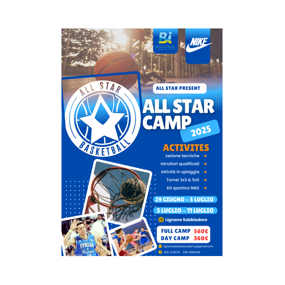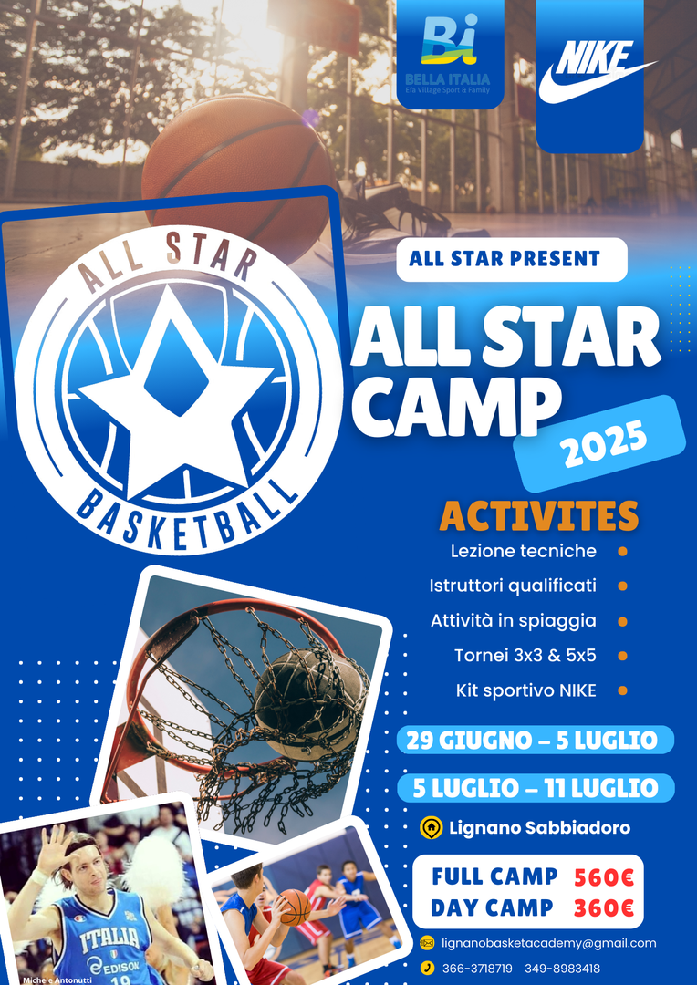 ALL Star Basketball Academy è un progetto nato nel 2018 che offre la possibilità a molti ragazzi e ragazze di avvicinarsi al basket e di ampliare la propria conoscenza atletica e multisport in un contesto strutturato per coinvolgere centinaia di atleti provenienti da tutte le regioni d’Italia. La forza del nostro lavoro è nel nostro staff, coordinato da tecnici preparati e di comprovata esperienza